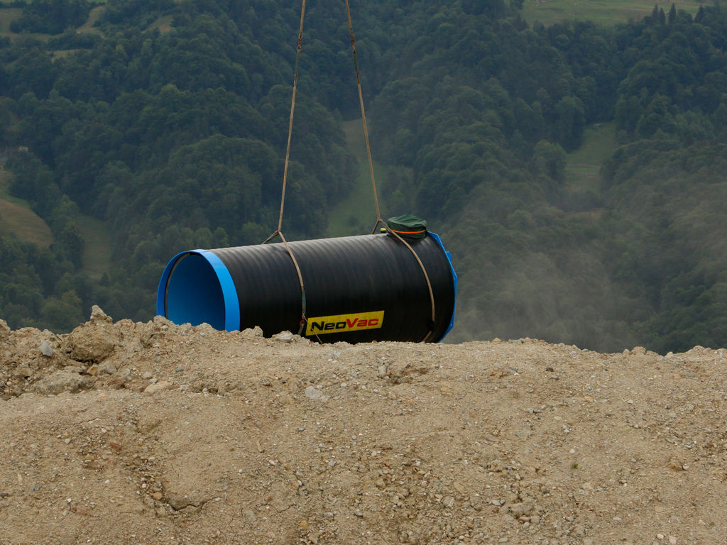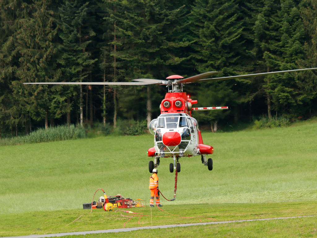 Es ratterten die Rotoren eines Super Pumas in Schachen Luzern. Transportiert hat der Helikopter die zwei PE-Formteile vom Reservoir Albisser, welches von der Wasserversorgung Scahchen bei NeoVac in Auftrag gegeben wurde.