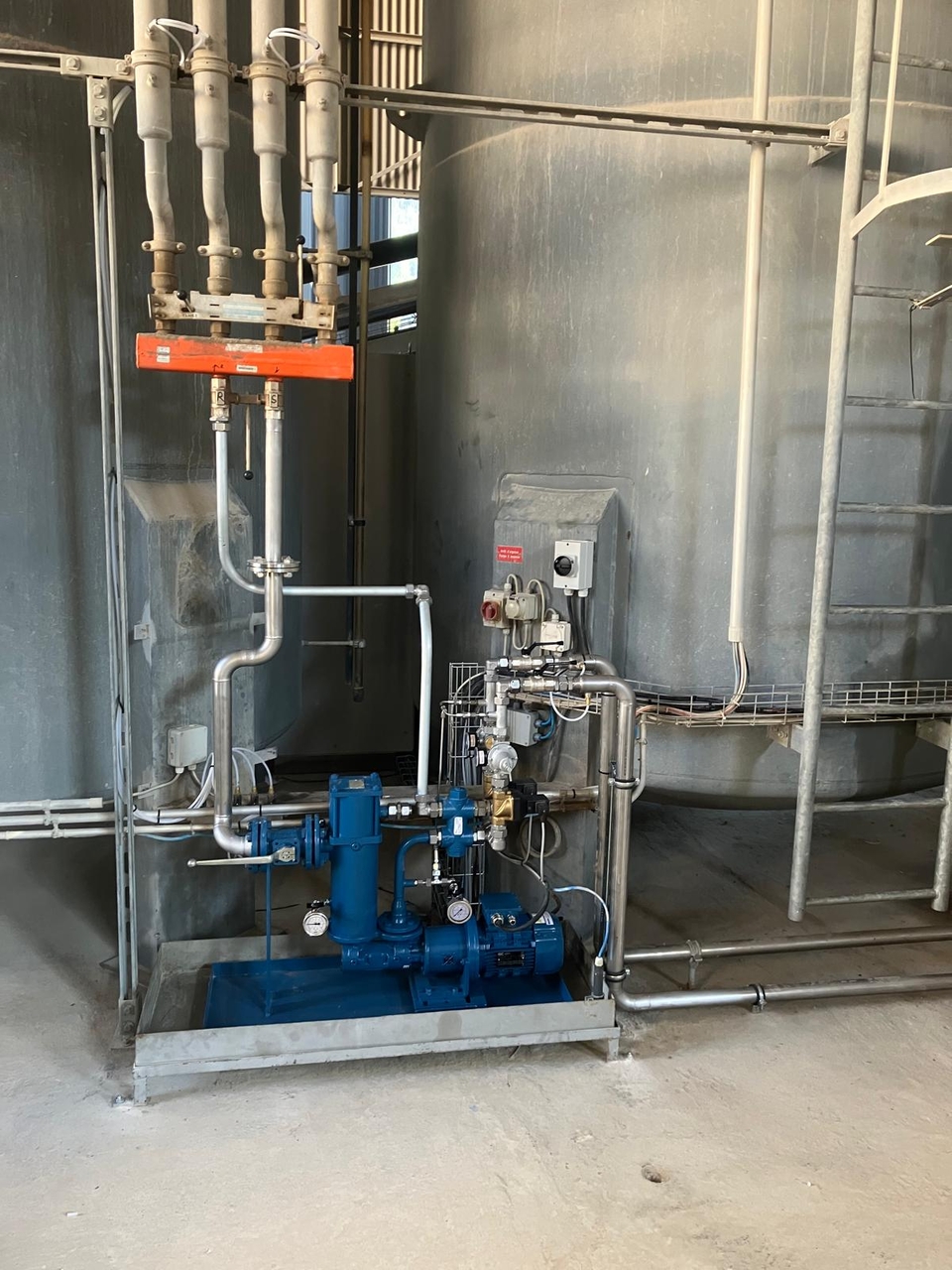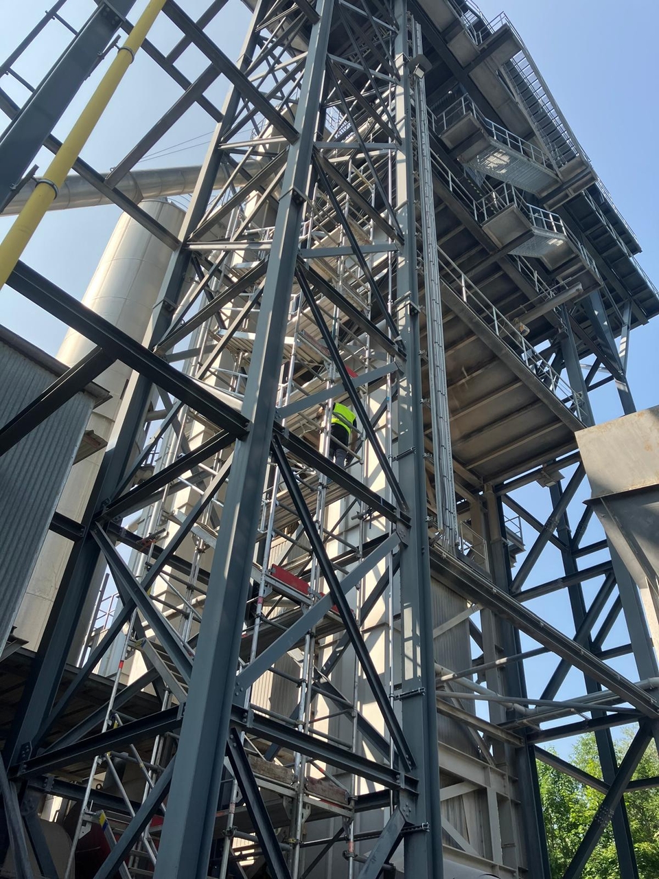 Die neue Förderpumpstation wurde so ausgelegt, dass eine zusätzliche Ersatzpumpe integriert werden konnte. Ein zentrales Element des Projekts war die Installation einer 80 Meter langen Transferleitung aus robustem Chromstahl-Doppelrohr, die das Heizöl vom Erdgeschoss auf den 40 Meter hohen Asphaltturm befördert. Die Montagearbeiten in dieser Höhe erfolgten mit Gerüst und entsprechender Absturzsicherung.